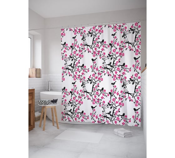 Сопутствующие товары для шторки-занавески JOYARTY Пичуги на цветущих ветках из сатена, 180х200 см с крючками