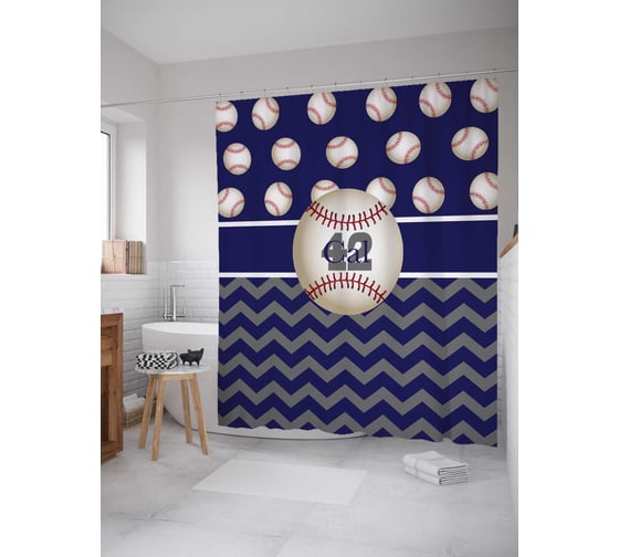Сопутствующие товары для шторки-занавески JOYARTY Монограма 42 на бейсбольном мяче из сатена, 180х200 см с крючками