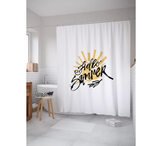 Штора (занавеска) для ванной JoyArty "Рад видеть тебя, лето" из сатена, 180х200 см с крючками, sc_53749 пошита из полиэстера, выгодно отличается красивым внешним видом, прочностью и длительным сроком службы, в отличии от подобных изделий из ПВХ и силикона.