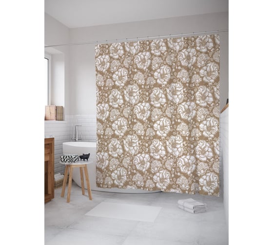 Штора (занавеска) для ванной JoyArty из сатена, 180х200 см с крючками sc_58277
