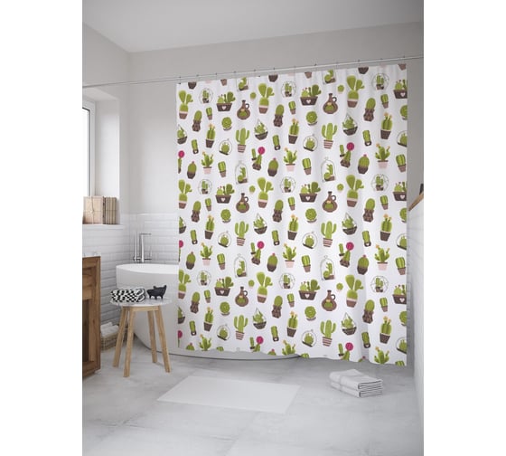 Штора (занавеска) для ванной JoyArty "Декор кактусов" из сатена, 180х200 см с крючками, sc_59465 пошита из полиэстера, выгодно отличается красивым внешним видом, прочностью и длительным сроком службы, в отличии от подобных изделий из ПВХ и силикона.