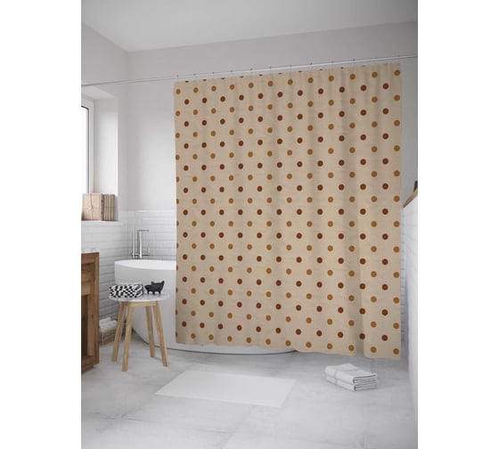 Штора (занавеска) для ванной JoyArty "Изображение квадратов точками" из сатена, 180х200 см с крючками, sc_33530