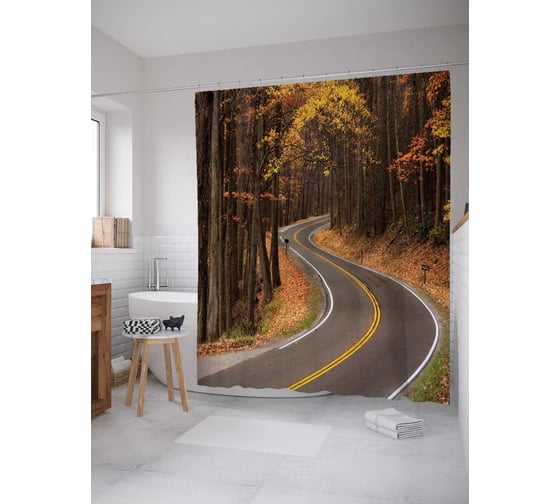 Штора (занавеска) для ванной JoyArty "Извилистая лесная дорога" из сатена, 180х200 см с крючками, sc_37661