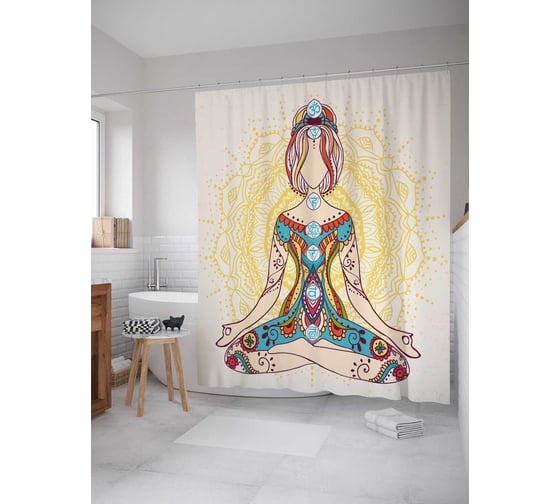 Штора (занавеска) для ванной JoyArty "Йогиня" из сатена, 180х200 см с крючками, sc_18783