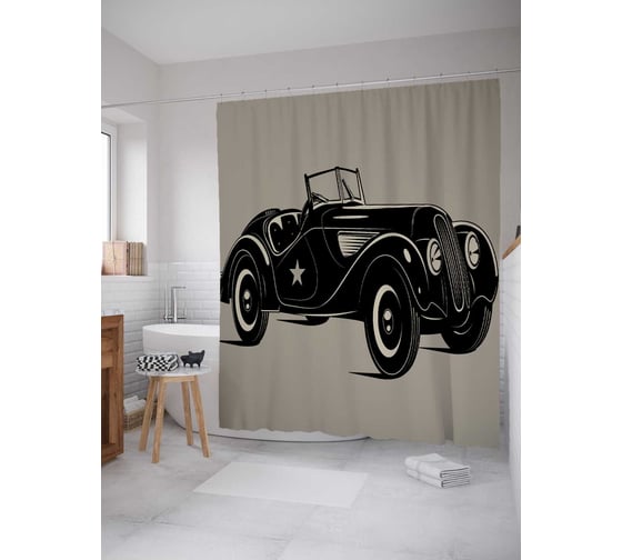 Штора (занавеска) для ванной JoyArty "Кабриолет со звездой" из сатена, 180х200 см с крючками, sc_18218