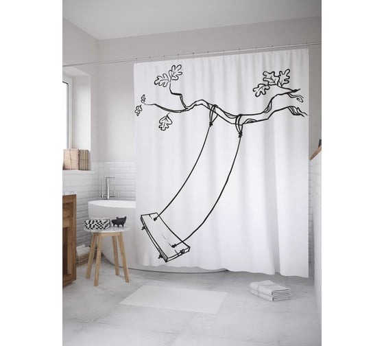 Штора (занавеска) для ванной JoyArty "Качалка на веточке" из сатена, 180х200 см с крючками, sc_32478