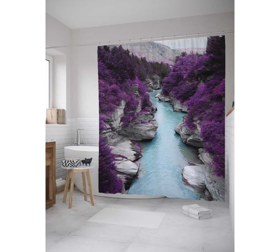 Штора (занавеска) для ванной JoyArty "Каменистые берега" из сатена, 180х200 см с крючками, sc_8455