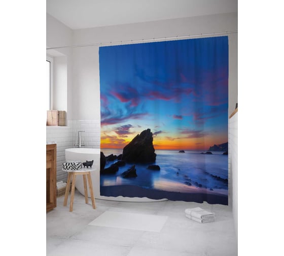 Штора (занавеска) для ванной JoyArty "Каменистый пляж" из сатена, 180х200 см с крючками, sc_19847