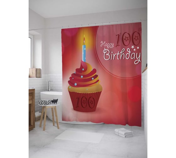 Штора (занавеска) для ванной JoyArty "Кекс на столетие" из сатена, 180х200 см с крючками, sc_33308