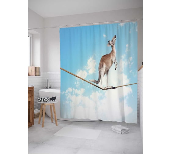Штора (занавеска) для ванной JoyArty "Кенгуру канатоходец" из сатена, 180х200 см с крючками, sc_4947