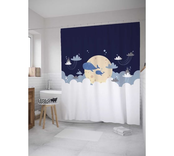 Штора (занавеска) для ванной JoyArty "Китовые грёзы" из сатена, 180х200 см sc_378504