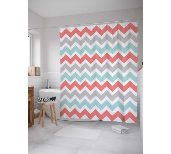 Штора (занавеска) для ванной JoyArty "Классические зигзаги" из сатена, 180х200 см с крючками, sc_5392