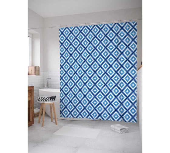 Штора (занавеска) для ванной JoyArty "Классика ромба в ромбе" из сатена, 180х200 см с крючками, sc_29239