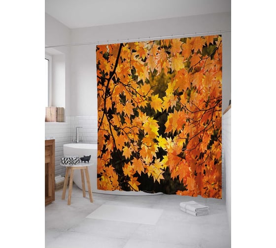 Штора (занавеска) для ванной JoyArty "Кленовые ветви" из сатена, 180х200 см с крючками, sc_37671