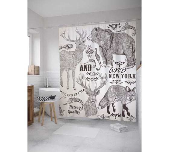 Штора (занавеска) для ванной JoyArty "Клуб охотников" из сатена, 180х200 см с крючками, sc_35750