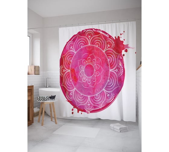 Штора (занавеска) для ванной JoyArty "Кляксы на мандале" из сатена, 180х200 см с крючками, sc_63283