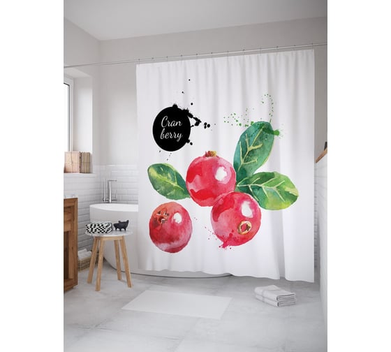 Штора (занавеска) для ванной JoyArty "Клюква" из сатена, 180х200 см с крючками, sc_62315