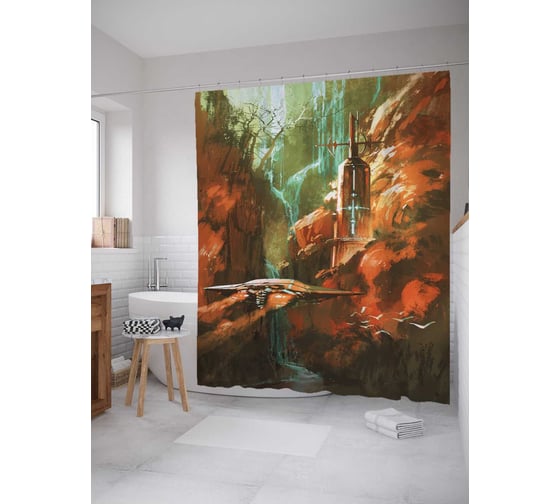 Штора (занавеска) для ванной JoyArty "Колдовская башня" из сатена, 180х200 см с крючками, sc_19135