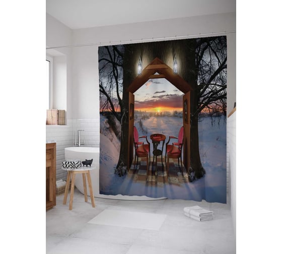 Штора (занавеска) для ванной JoyArty "Комната в дереве" из сатена, 180х200 см с крючками, sc_4616