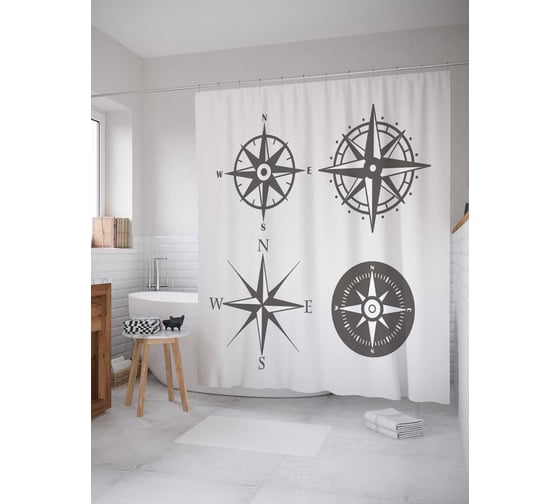 Штора (занавеска) для ванной JoyArty "Компас для всех" из сатена, 180х200 см с крючками, sc_14187