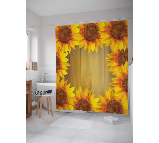 Штора (занавеска) для ванной JoyArty "Композиция с подсолнухами" из сатена, 180х200 см с крючками, sc_14826