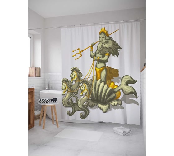 Штора (занавеска) для ванной JoyArty "Кони посейдона" из сатена, 180х200 см с крючками, sc_21715