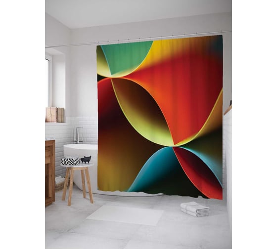 Штора (занавеска) для ванной JoyArty "Конструкция из красок" из сатена, 180х200 см с крючками, sc_22233