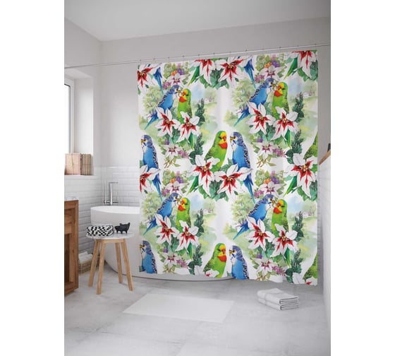 Сопутствующие товары для шторки-занавески JOYARTY Контраст попугаев из сатена, 180х200 см с крючками