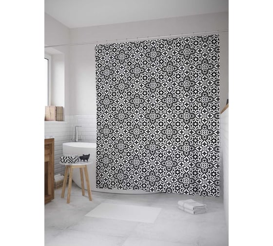 Сопутствующие товары для шторки-занавески JOYARTY Контрастные орнаменты из сатена, 180х200 см с крючками