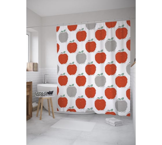 Сопутствующие товары для шторки-занавески JOYARTY Контрастный вектор яблок из сатена, 180х200 см с крючками