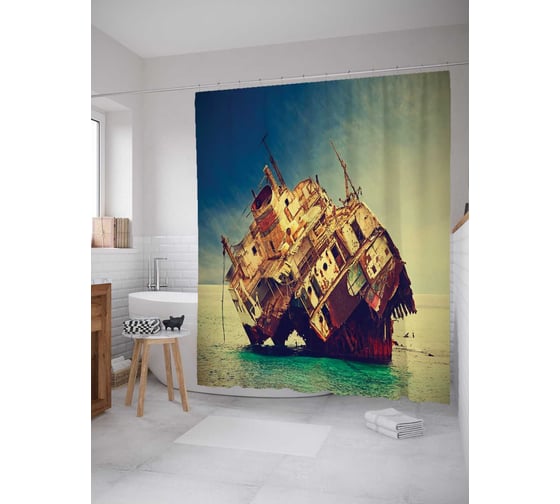 Штора (занавеска) для ванной JoyArty "Корабль на суше" из сатена, 180х200 см с крючками, sc_20536