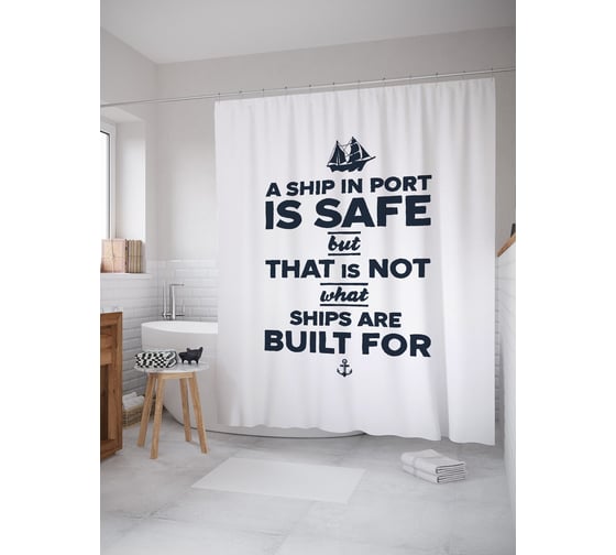 Штора (занавеска) для ванной JoyArty "Корабль в порту безопасен, но корабли строятся не для этого" из сатена, 180х200 см с крючками, sc_53229