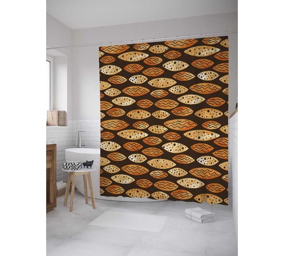 Сопутствующие товары для шторки-занавески JOYARTY Коричневые овалы из сатена, 180х200 см с крючками