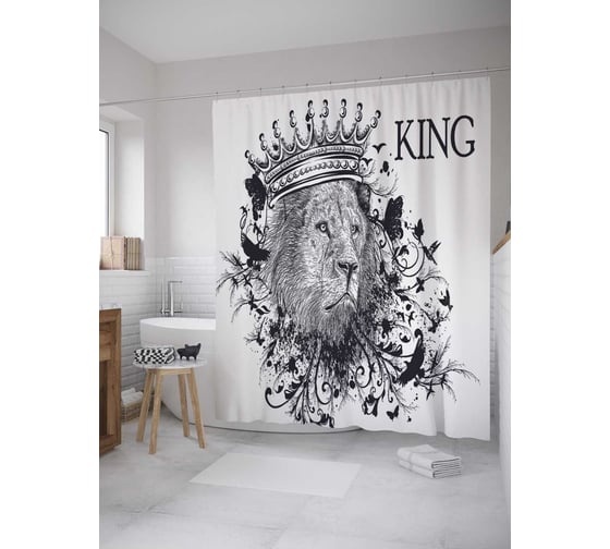 Штора (занавеска) для ванной JoyArty "Король лев" из сатена, 180х200 см с крючками, sc_36004