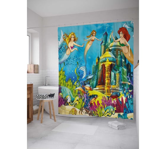 Сопутствующие товары для шторки-занавески JOYARTY Королевство русалок из сатена, 180х200 см с крючками