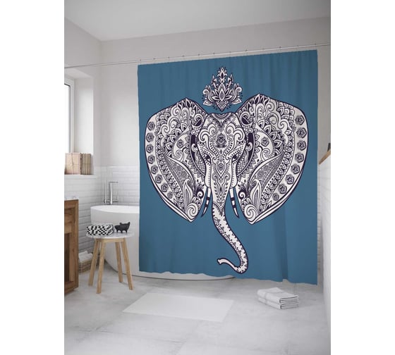 Штора (занавеска) для ванной JoyArty "Корона ганеши" из сатена, 180х200 см с крючками, sc_35384