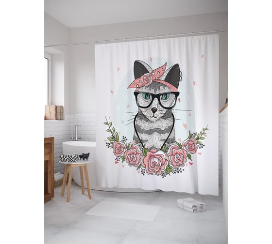 Сопутствующие товары для шторки-занавески JOYARTY Кошка в очках с бантиком из сатена, 180х200 см с крючками