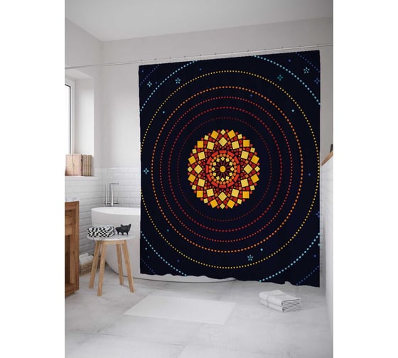 Штора (занавеска) для ванной JoyArty "Космическая мандала" из сатена, 180х200 см с крючками, sc_35335