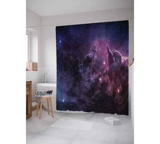 Штора (занавеска) для ванной JoyArty "Космическая неизвестность" из сатена, 180х200 см с крючками, sc_20191