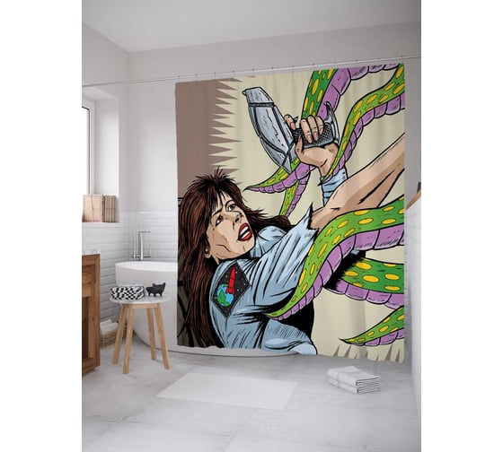 Сопутствующие товары для шторки-занавески JOYARTY Космические пришельцы из сатена, 180х200 см с крючками