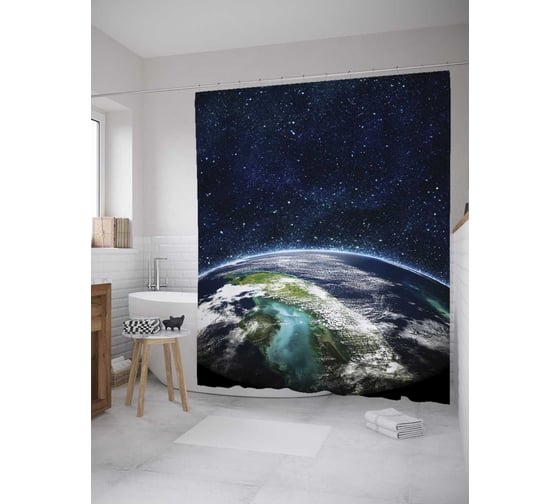Штора (занавеска) для ванной JoyArty "Космический горизонт" из сатена, 180х200 см с крючками, sc_8614