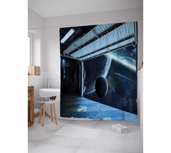 Штора (занавеска) для ванной JoyArty "Космический вид" из сатена, 180х200 см с крючками, sc_21680
