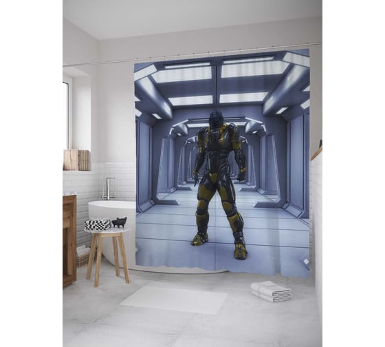 Штора (занавеска) для ванной JoyArty "Космический воин" из сатена, 180х200 см с крючками, sc_27989