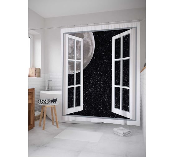 Штора (занавеска) для ванной JoyArty "Космическое окно" из сатена, 180х200 см с крючками, sc_7355