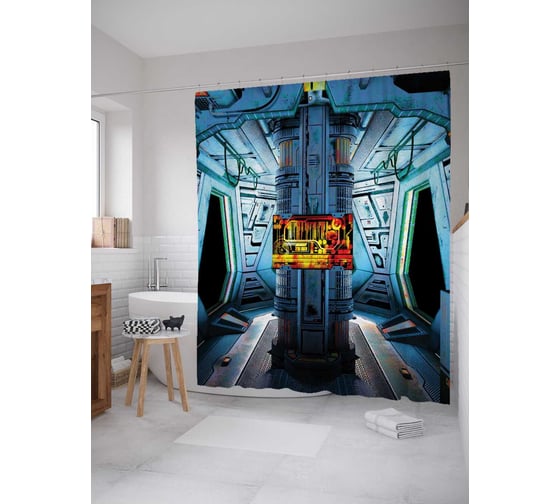 Штора (занавеска) для ванной JoyArty "Космическое убежище" из сатена, 180х200 см с крючками, sc_15677