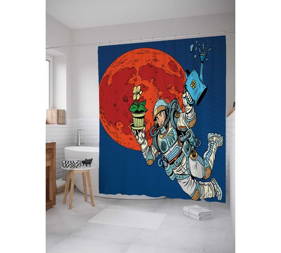 Сопутствующие товары для шторки-занавески JOYARTY Космонавт с цветком из сатена, 180х200 см с крючками