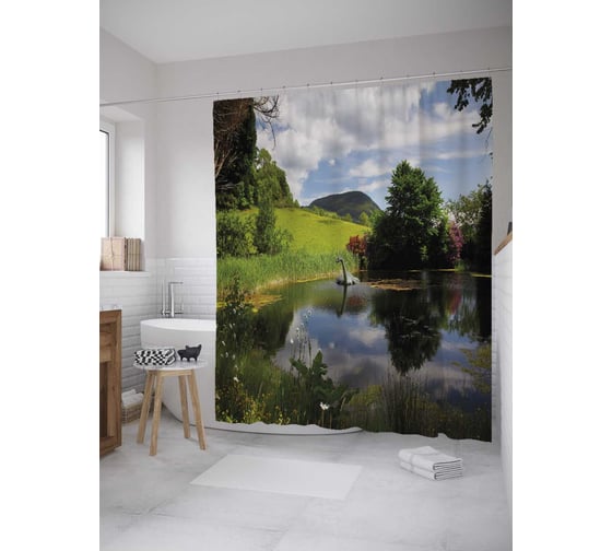 Штора (занавеска) для ванной JoyArty "Красивый пейзаж" из сатена, 180х200 см с крючками, sc_32916