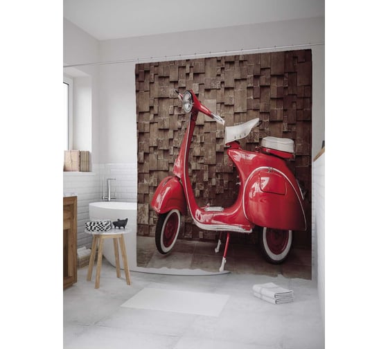 Штора (занавеска) для ванной JoyArty "Красный скутер" из сатена, 180х200 см с крючками, sc_28154