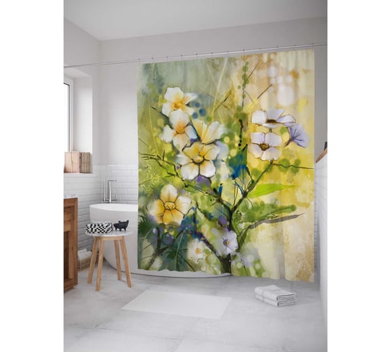 Штора (занавеска) для ванной JoyArty "Красочная живопись" из сатена, 180х200 см с крючками, sc_21148
