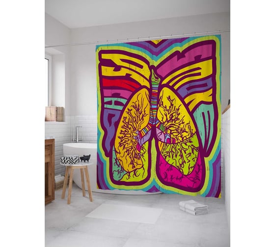Штора (занавеска) для ванной JoyArty "Красочные легкие" из сатена, 180х200 см с крючками, sc_78596